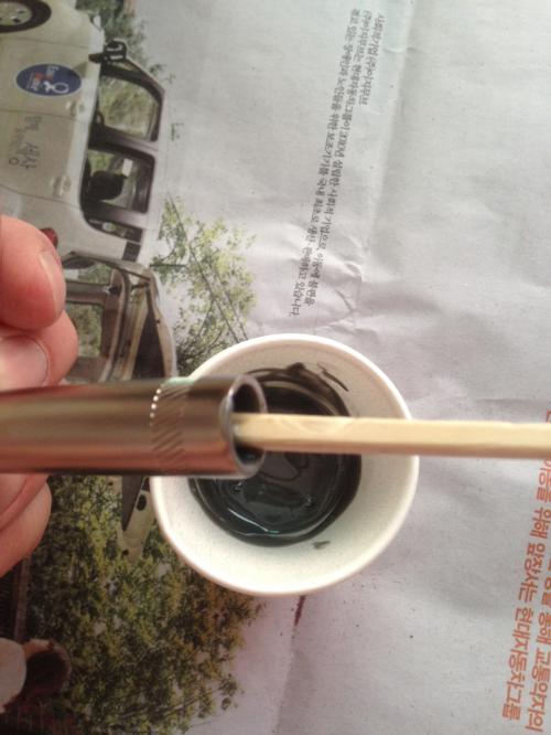 두 개의 용액을 섞으면 이젠 시간 싸움입니다. 최대한 빨리 샤프트와 헤드에 접착제를 골고루 바르고,