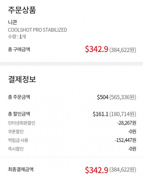 니콘브랜드는 현대면세 V+ 젤높은 등급이래도 추가할인이 되지는 않네요