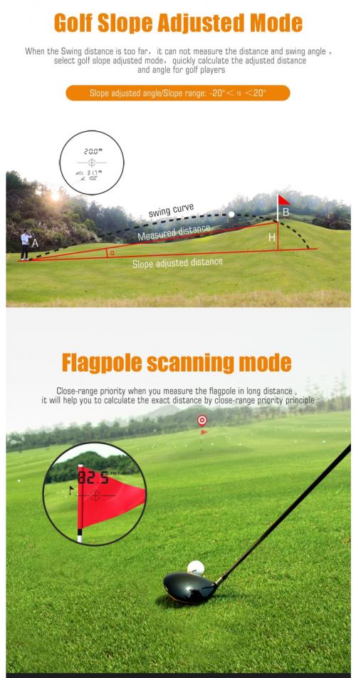 아래 모드는 먼거리에서 찍을때 깃발을 정확히 맞추는게 쉽지 않기 때문에 깃발을 스캔하듯이 지나가면 깃대위치를 인식해서 거리를 잡아주는 모드 입니다. 보통 아마추어들은 두가지모드 동시에 켜고 사용 합니다. | ||