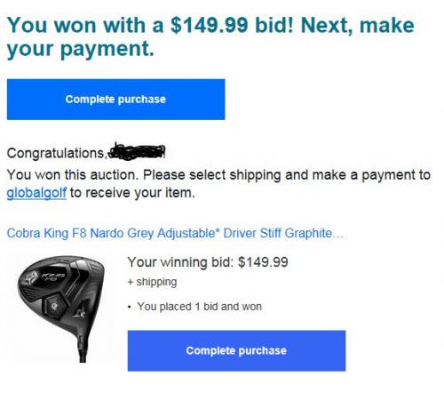 어라 50불정도만 더 주면 샤프트까지 언져주네? 글로벌골프 mint급이면 믿을만하다고 알고 있어서(가끔 비닐에션도 온다고...) 고민 한 30분하다가 에라 모르겠다 비딩 넣고 다른일 하다가 메일함을 보니 ㅋㅋㅋㅋㅋㅋㅋㅋ