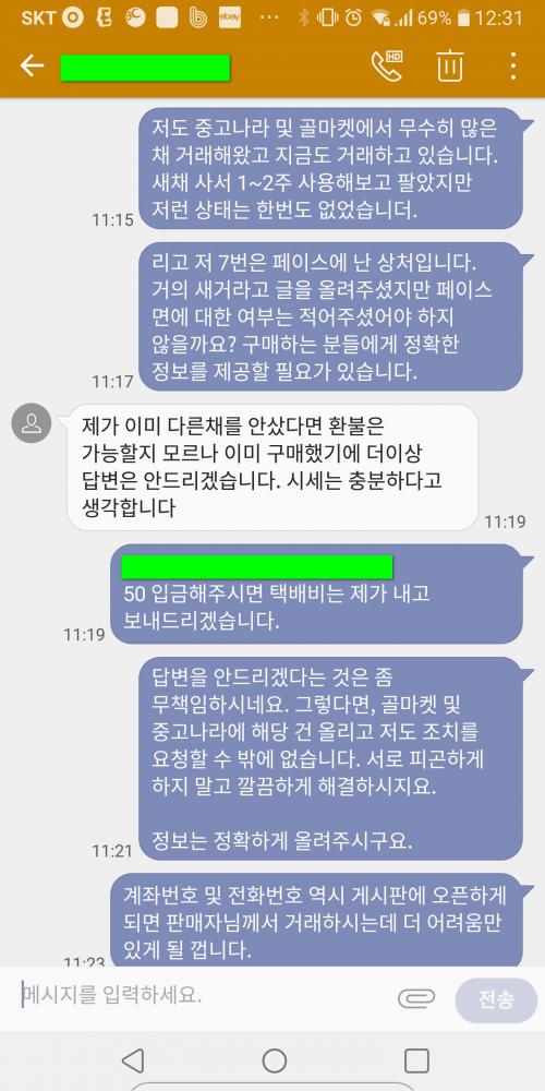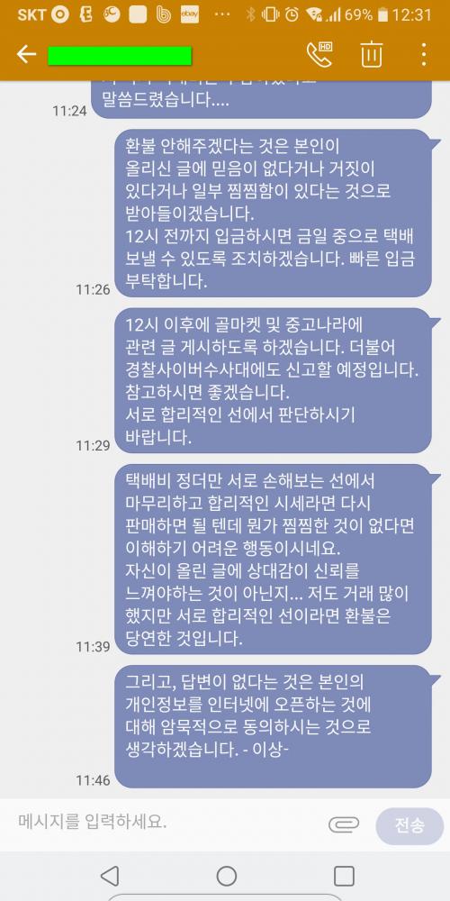 6. 환불 요청, 무응답 시 각종 인터넷 커뮤니티, 골마켓, 중고나라, 사기정보 게시판, 경찰청 사이버수사대 등에 게시하겠다고 문자를 보냈으나 무응답