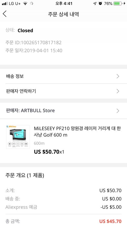 레이저 측정기를 눈여겨 보다보니 알리발 레이저 측정기 관련 너도 나도 칭찬 일색이어서 고민하다 정신을 차려보니 저도 모르게 주문을 하고 있더라고요...ㅎㅎ 근데 요즘 회사 외부 손님이 너무 많아서 바쁜 와중에 결제하느라 쿠폰도 제대로 못쓴거 같네요.... 어쨌든 짬을 내어 겨우 주문을 했습니다...그런데 상태에 Closed라고 되어 있는데 이게 주문이 제대로 된건지 안된건지 잘 모르겠네요.... 아니면 재고가 없어서 마감되었다는 말인지.....많이들 구매하셨을텐데 조언 부탁합니당~~~