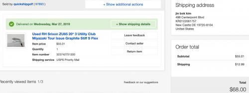 먼저 구매는 이베이 샐러 quickshipgolf 의 상품을 비딩을 통해 낙찰 받았습니다.