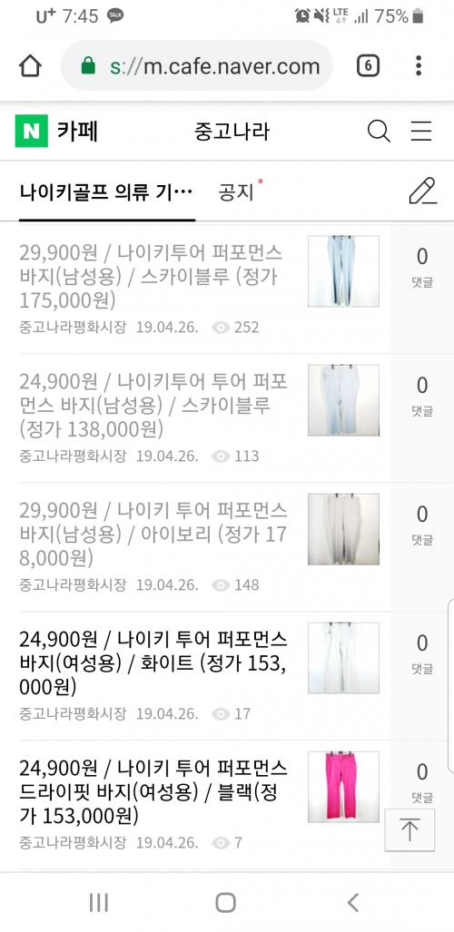 중고나라에서 나이키 골프 80퍼 세일하네요