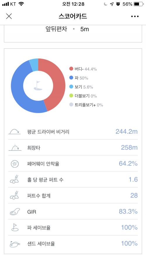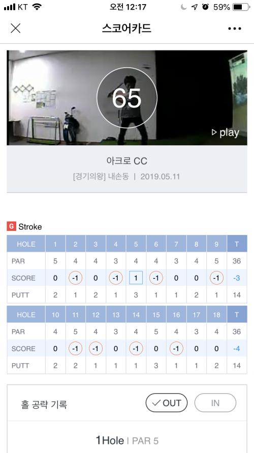 중간중간 한컵 두컵은 퍼팅시 판 돌렸습니다 기록에 눈이 멀어서요