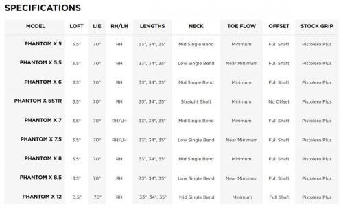 팬텀 시리즈는 No. 5,6,7,8,12의 다섯 개의 헤드 스타일 모델을