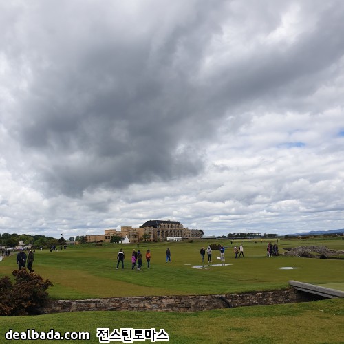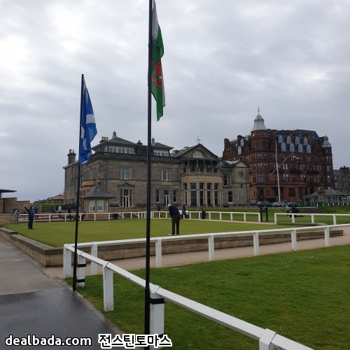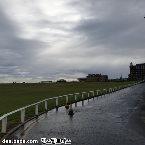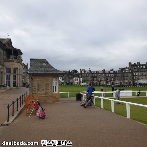 버스에서 내려서 한 골목 안쪽으로 들어가면 바로 세인트 앤드류스 올드코스가 펼쳐집니다. 사진에서 보이는 쪽은 18번홀 그린을 향하고 있고 가운데 건물이 R&A 건물인데 회원만 출입할 수 있게 엄격히 제한된 곳이었습니다. 그리고 18번홀 옆에는 바로 1번홀 티박스가 있습니다. 즉 18번홀 왼쪽은 1번홀 티박스 오른쪽은 차들이 주차된 도로와 건물들이 바로 붙어있습니다. 제가 가면 유리창을 깨거나 1번홀로 위험신호를 보내야 할 지도 모르겠군요. 올드코스 예약하려면 공식핸디가 있어야 한다더니 꼭 필요할 것 같습니다 ㅋㅋ