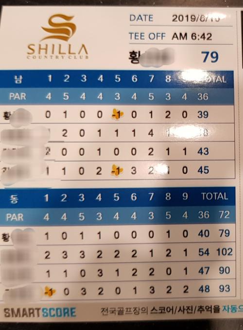 신라cc 서out 남in 코스로 돌았습니다(스코어카드상 서코스가 동으로 표시 오류네요)