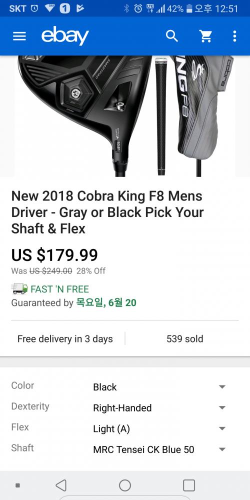 우연히 이베이 보다가 발견했는데 코브라 f8 179달라면 괜찮지 않나요? 지난주 도라방 호젤 사망으로 급하게 클리브랜드 런처 드라이버 싸고 배송 빨라서 일단 주문은 했는데...코브라 어떤가요?