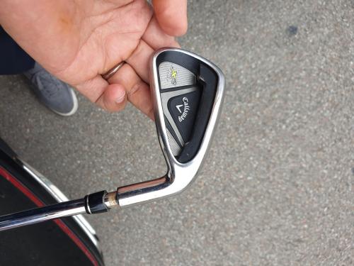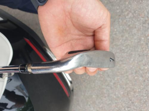 그런데 17번홀 세컨 후에 사진과 같이 7번 아이언 헤드와 샤프트 연결 부분이 부러지면서 쏙 빠졌습니다.