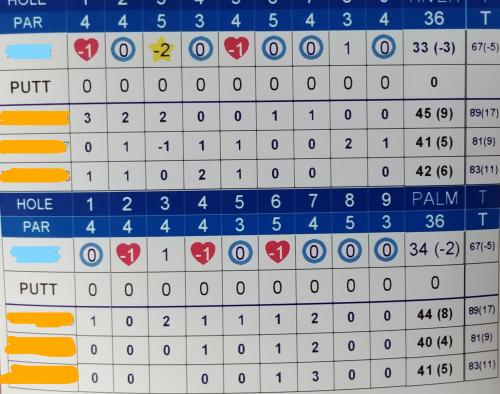 비온뒤라 그린도 느려 짧은 퍼팅도 몇개 놓치고 보기 2개 한게 못내 아쉽네요..(그린상태가 좋았으면 짭은 퍼팅은 넣었어도 다른 버디, 이글 펏은 안들어갔겠죠^^)