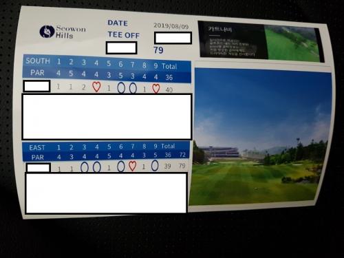 첫홀 티샷이 감기면서 OB가 나서 오늘 망했구나..했는데 다행히 오비티 세컨이 홀컵옆에 붙어 보기로 선방한