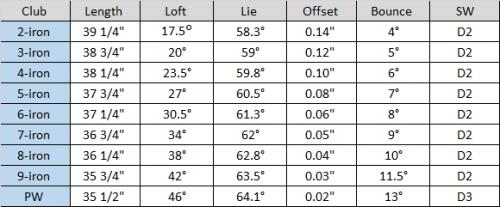 위에 테이블은 순서대로 핑 블루프린트, PXG 0311T(GEN2) 아이언의 스펙인데요. 투어모델인데도 높은 바운스를 가지고 있습니다.