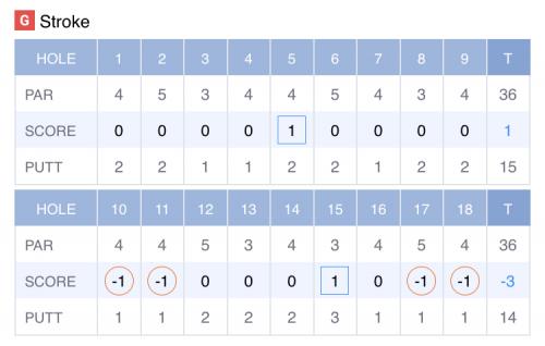 역시 쇼게임이 중요하군요 퍼팅이 40개라 80초에서 줄지가 않네요 | ||