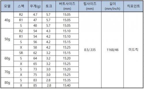BB랑 같은 라인에서 좀더 아래쪽 저탄도에 포진하고 있는 페이드 계열 샤프트군요 ㅎㅎ
