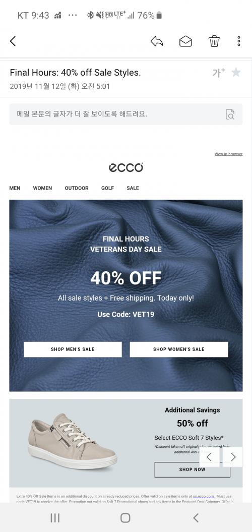 맞아요 40프로 할인해야 정가죠 ㅎㅎ 제가 나이키 280 신는데 에코는 43이 잘 맞습니다 | ||