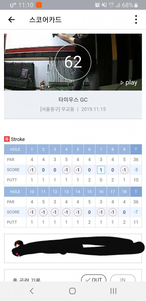 회식후 스크린 같이 일하는 분들과 스크린 쳤는데, 버디만 11개 62타 라베했어요. 쉬운 코스이긴 했습니다만, G투어 모드에 챔피온 티에서 쳤습니다.