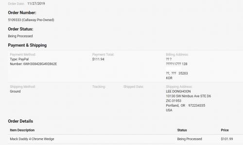 웨지 두자루 페이팔로 결제했는데..(배송지는 직구닷컴 배대지)