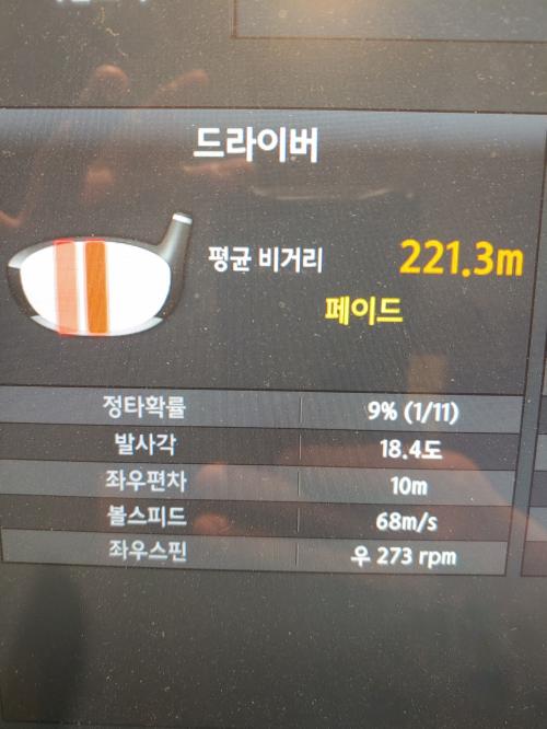 드라이버 탄도가 아무리 게임이라지만 18.4도 ㅜㅜ