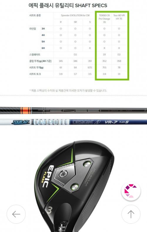투어AD 78g 샤프트가 꽂혀있는 에픽플래시