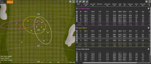 에픽플래쉬 하이브리드 보다 볼스피드도 빠르고 총 거리가 7야드 정도 더 나가네요.