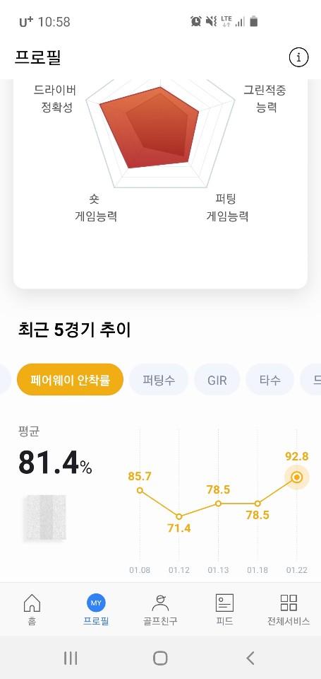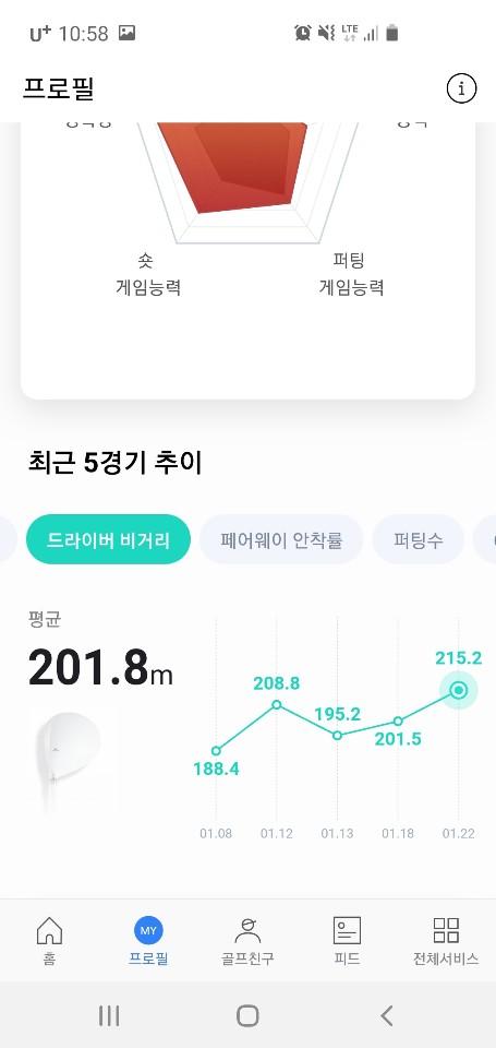아래 사진에 첫번째 경기가 미니드라이버로 친 거고 그 뒤로 네 번이 스릭슨으로 친 건데