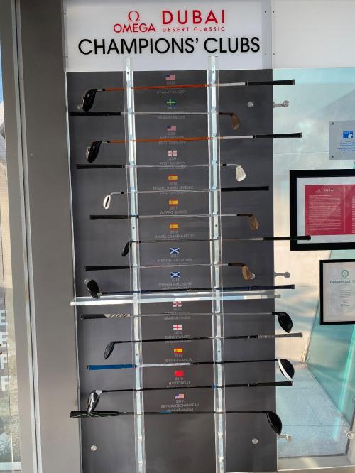 마지막 사진은 역대 우승자들이 이곳 에미리츠 골프클럽에 기증한 클럽인데 마지막 클럽이 작년 우승자 브라이언 디솀보가 기증한 클럽입니다. 코브라 F9네요. 저는 왜 같은 드라이버인데 겨우 200미터 치는지...ㅠㅠ