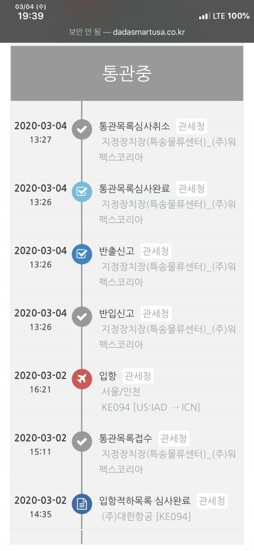 통관목록심사완료 후에 급 통관목록심사취소가 됐네요