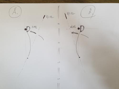 어떤점에서 골프와 안맞는지 여쭤 봐도 될까요? 정도의 차이가 있지만 임팩트시 샤프트 모양은 A에 가까울텐데요. | ||