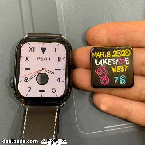 크기 비교하시라고 워치랑 같이 찍어봤는데요. 생각보다 작습니다. 시계는 44mm애플워치입니다.