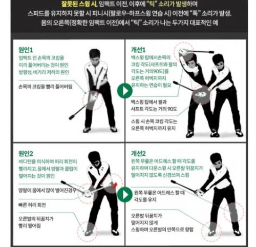 드라이버나 아이언 짧게잡고 반스윙만 천천히 해보시는 것도 좋아요~ 천천히 올바른 동작 많이 연습하시면 그것도 몸에 익습니다 | ||