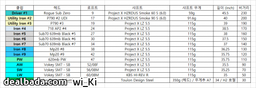 오늘 라운딩 클럽 구성은 아래와 같습니다.