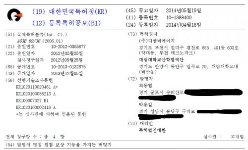 작년(2019년)에 특허를 받았네요. 따끈따끈!ㅎㅎ