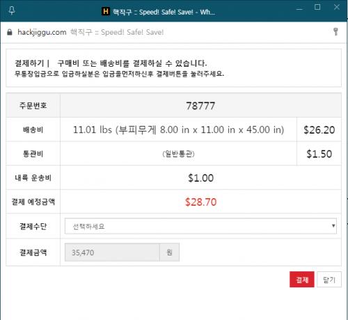 저도 방금 결제했네요~ 아이언 8개에 모자하나 합배송.. 모자는 그냥 뜯어서 아이언박스에 넣어달라고하긴했는데 어떻게 했는지는 모르겠어요.. 저는 기본검수에 할인쿠폰사용했고 31.03 나왔네요~ | ||