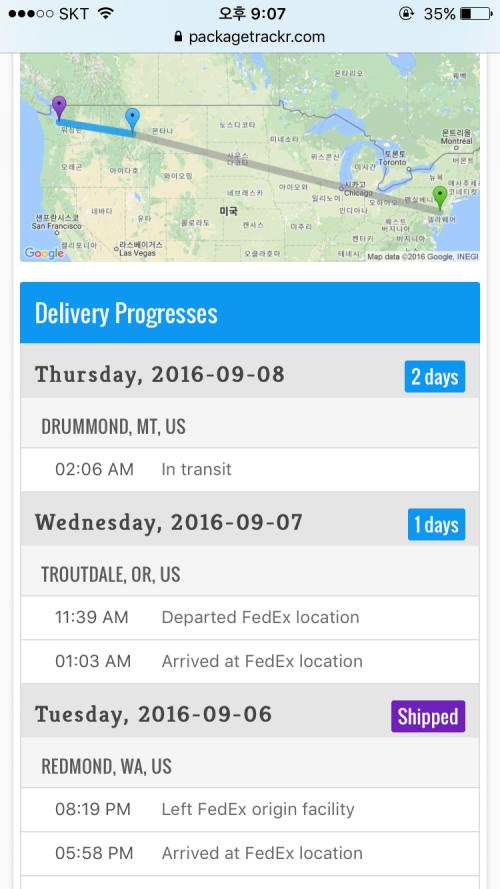 미국시간으로 지난 4일 결제했고 6일 출발했는데 이제 1/3 왔네요 ㅋㅋ
