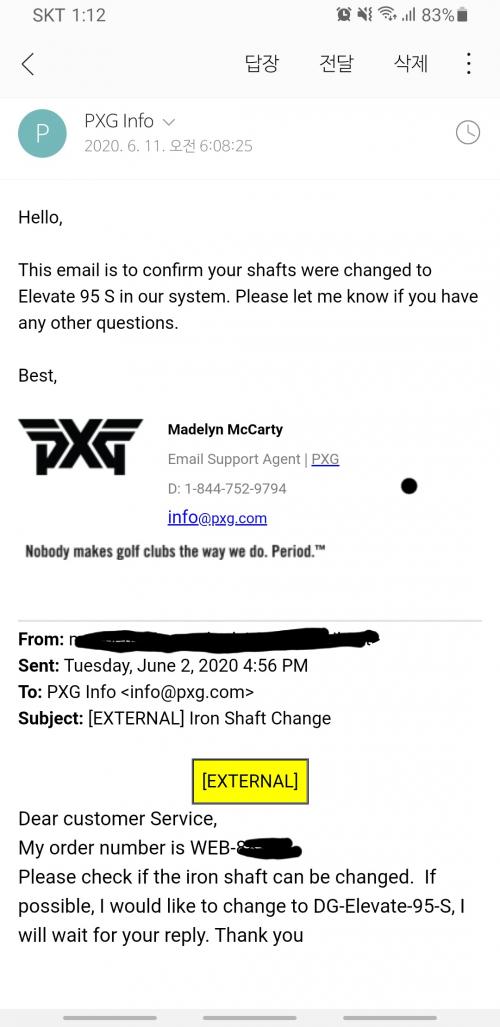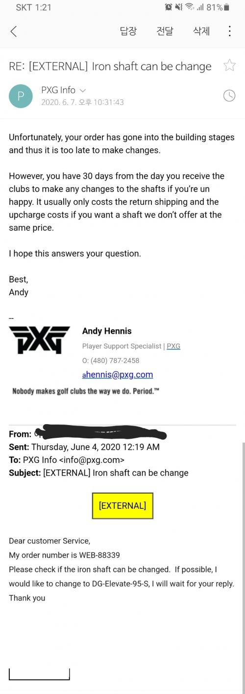 메일 내용 캡쳐해서 받은 샤프트 사진 보내면서 샤프트 바꿔달라고 하면 바꿔줄라나. 아님 그냥 써야하나