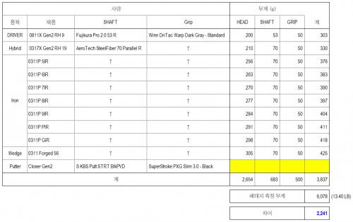 (퍼터는 무게를 어떻게 계산해야 할지 몰라서 비웠습니다. 퍼터추 추가구입 했습니다.)