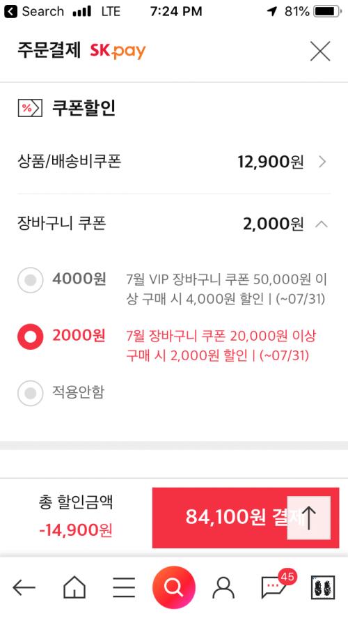 3. 장바구니 5만원 이상 4천원할인(VIP 등급만)