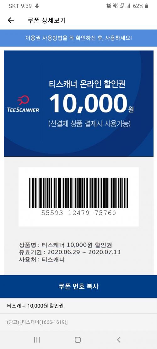 티스캐너 만원 할인권 사용하세요