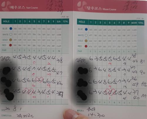 자주나가는 동반자분이 막걸리도 핸디에 포함이라고 하셔서 저도 항상 후반에 망합니다 가끔 대기시간 짧아서 안마시는날 스코어가 좋네요ㅎㅎ | ||