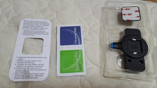 핸드폰 센터에 쉽게 맞출수 있는 샘플이미지와 양면 테이프를 붙일 자리를 닦는 거즈 두개...그리고 본체입니다.