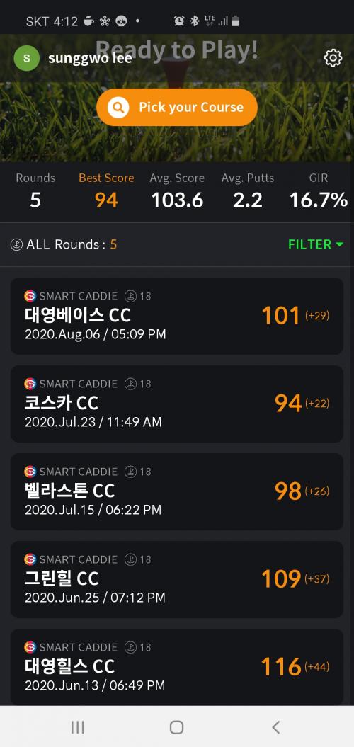 최근 스코어거 점점 좋아지며 90대를 2번 치다보니