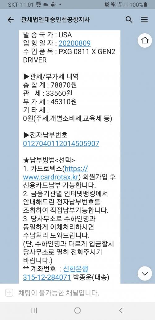 7월 28일 주문 하고 8월 11일 받았습니다. 핵** 사이트 이용했고 총금액이 325 달러+핵**배송비 할인코드 사용해서 18.73달러 +관세78870원= 환율해보니 총금액 486,648 이정도 들었습니다. 관세는 카톡이 오드라구요 그래서 인터넷 뱅킹들어가서 공과금 관세 납부하는곳에서 이체 했습니다.
