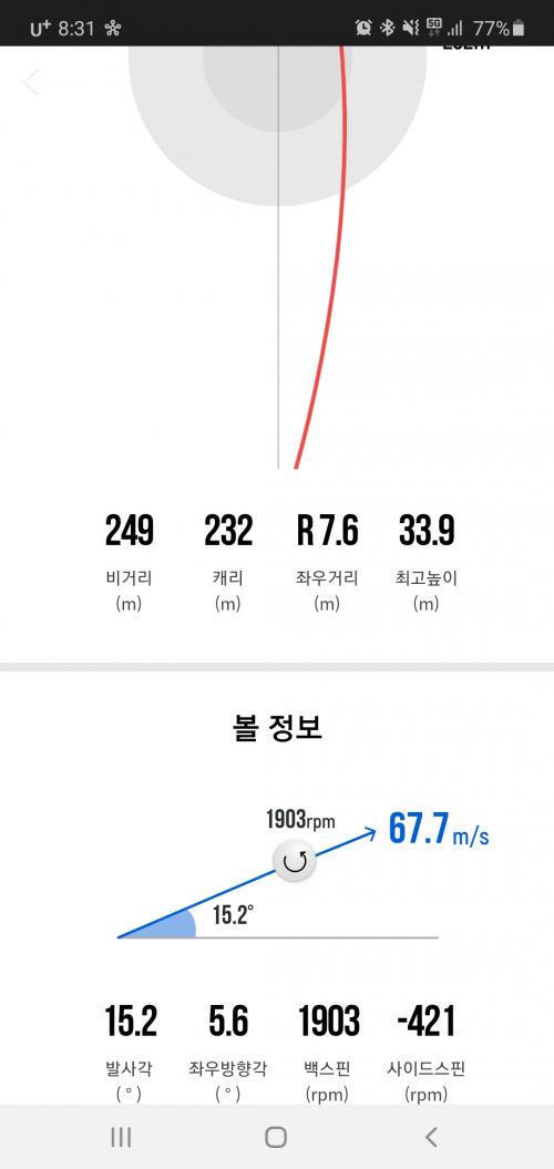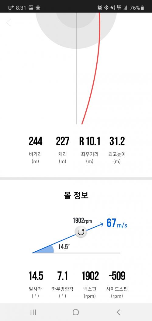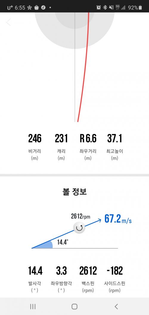 이런구질은 푸쉬성 드로우구요. 정상적인 드로우는 똑바로 출발했다가 끝 지점에서 왼쪽으로 살짝휘는걸 드로우라고 합니다. 그리고 푸쉬성 드로우는 스크린이나 측정장비로 보면 이뿐 푸쉬성 드로우지만 실제 필드에서는 거진 푸쉬가 됩니다. 실제 필드에서 푸쉬성 드로우치기는 생각보다 쉽지않죠. | ||