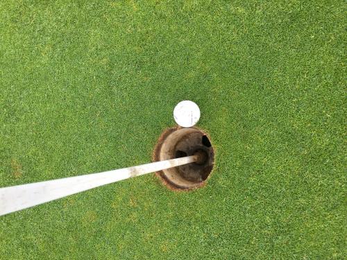 전반 마지막 파3 167 야드 홀에서 같이 치던 형의 크롬 소프트의 느낌이 궁굼해서 제 나이키 공과 바꾸었습니다. 그리곤 6번 아이언으로 따악 쳤는데 친구 이마를 때리는 듯한 타감과 소리를 남기고 직진하더니 하얀 깃대와 공이 합쳐지는 것 아니겠습니까? 그래도 한두번 속은것이 아니었기에 막상 가면 멀리 있겠지 하고 갔는데. 홀 바로 옆에 공이 딱 서있는 것이었습니다. 조금만 더 굴렀으면 홀인원인데. 저도 언젠가 할 수 있겠죠ㅋㅋㅋㅋㅋㅋ
