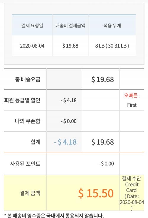 그나마 핵Xx가 조금이라도 부피무게 할인이 들어가서 스탠드백 박스 (적용무게 9 lb)는 30불은 안나왔습니다. | ||