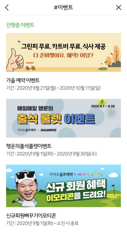 카카오골프예약 앱 이벤트 코너에 있습니다. | ||