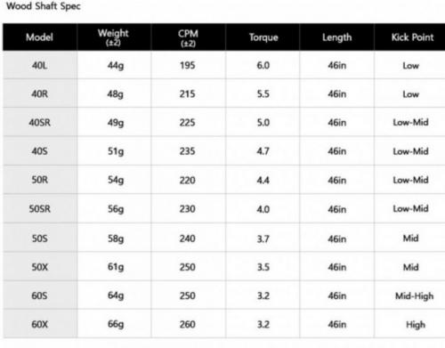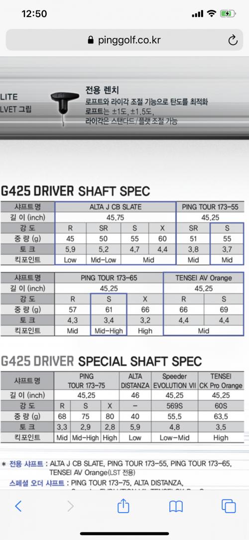 두개 샤프트 스펙 올려드릴게요. 50sr 이나 50s 써보시면 될듯해요.