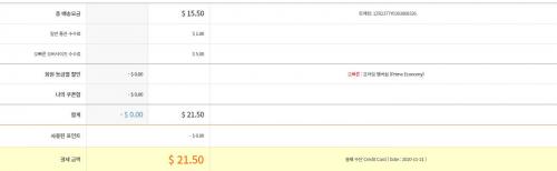 결제가 됐는데 두개 다 21.50불 나왔네요...
