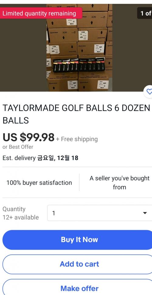 ebay 검색창에 Golf balls taylormade 6 dozen 이라고 치면 판매중인 볼이 나옵니다. 같은 셀러이고 아이템등록번호가 다른듯 합니다.